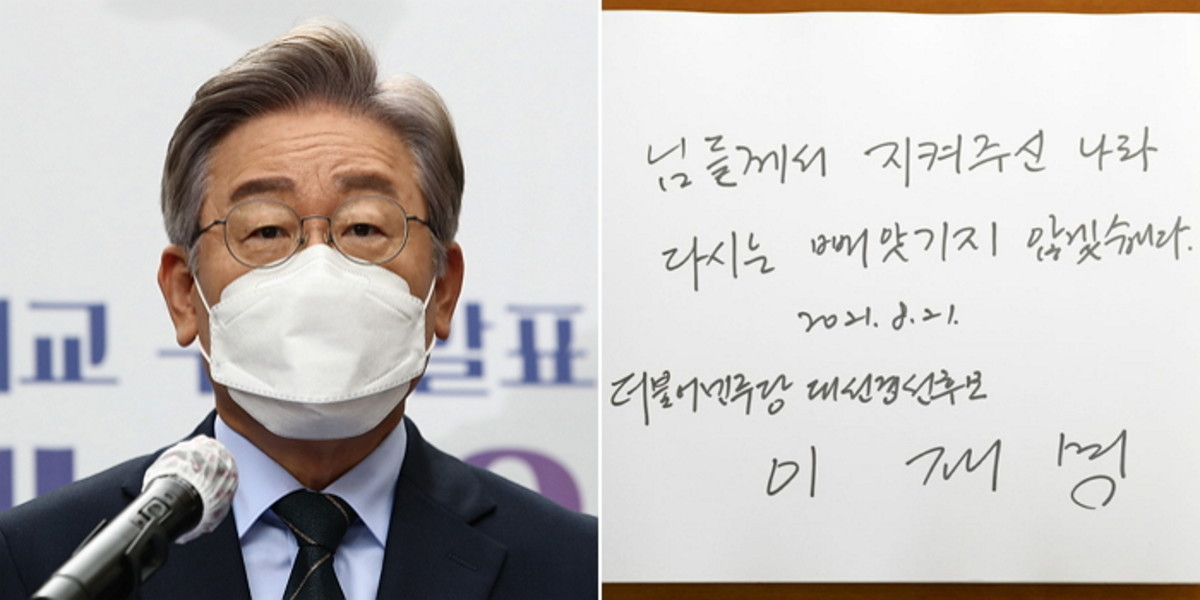 이날 이 지사는 순국선열을 기리는 뜻을 담은 방명록도 작성했다.