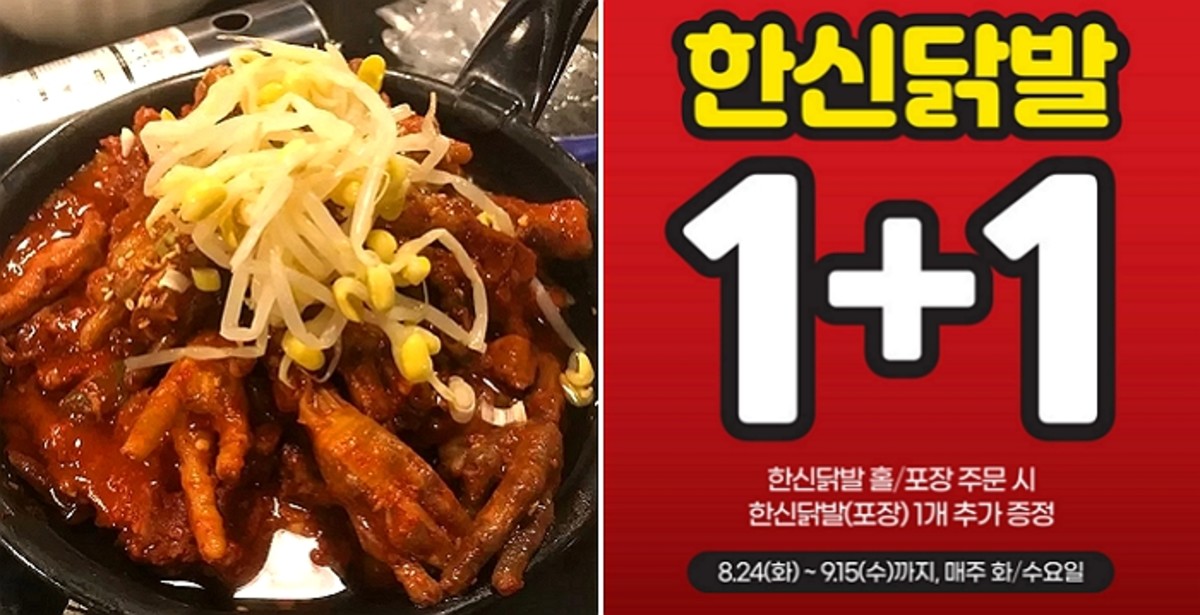많은 닭발 마니아들의 '최애' 메뉴로 뽑히는 '한신닭발'을 1+1으로 맛볼 수 있는 기회가 찾아온 것.
