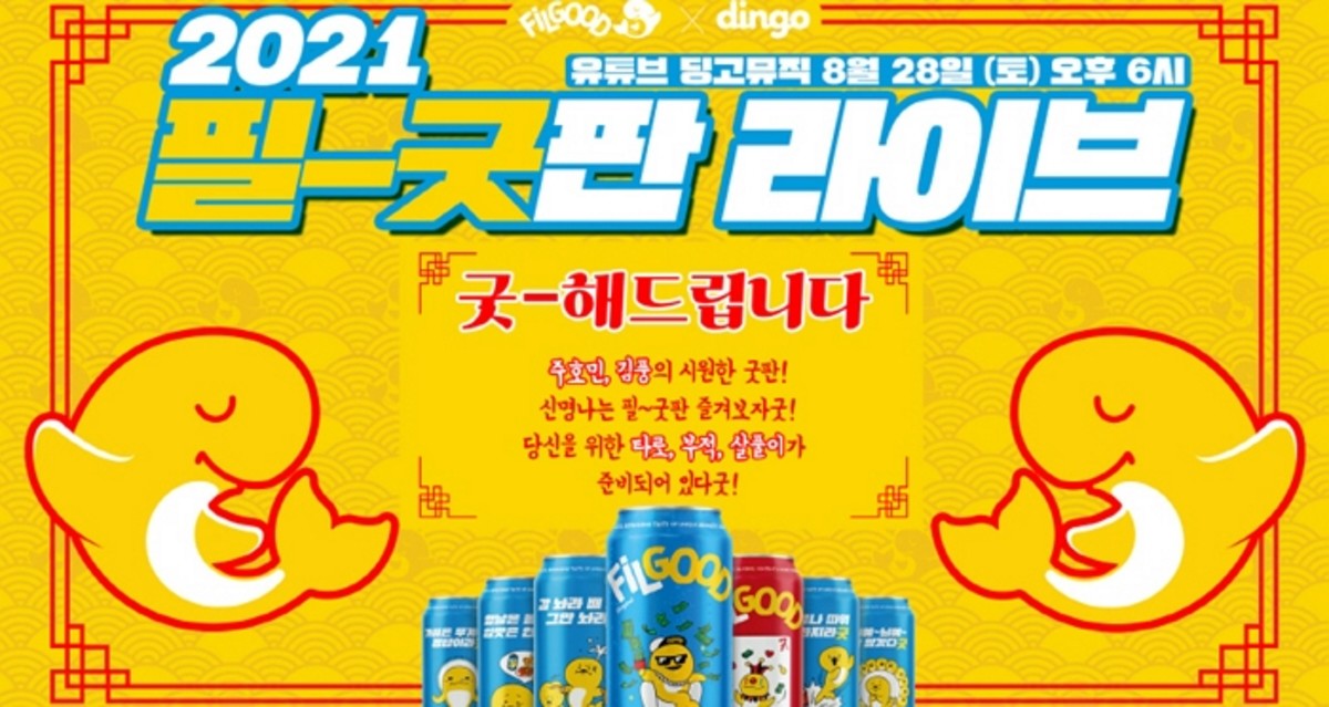 오비맥주는 '필굿'이 이색 라이브 방송 '2021 필-굿판 라이브'를 MC 주호민, 김풍과 함께 딩고 뮤직 유튜브 채널에서 내일(28일) 오후 6시 생중계한다고 말했다.