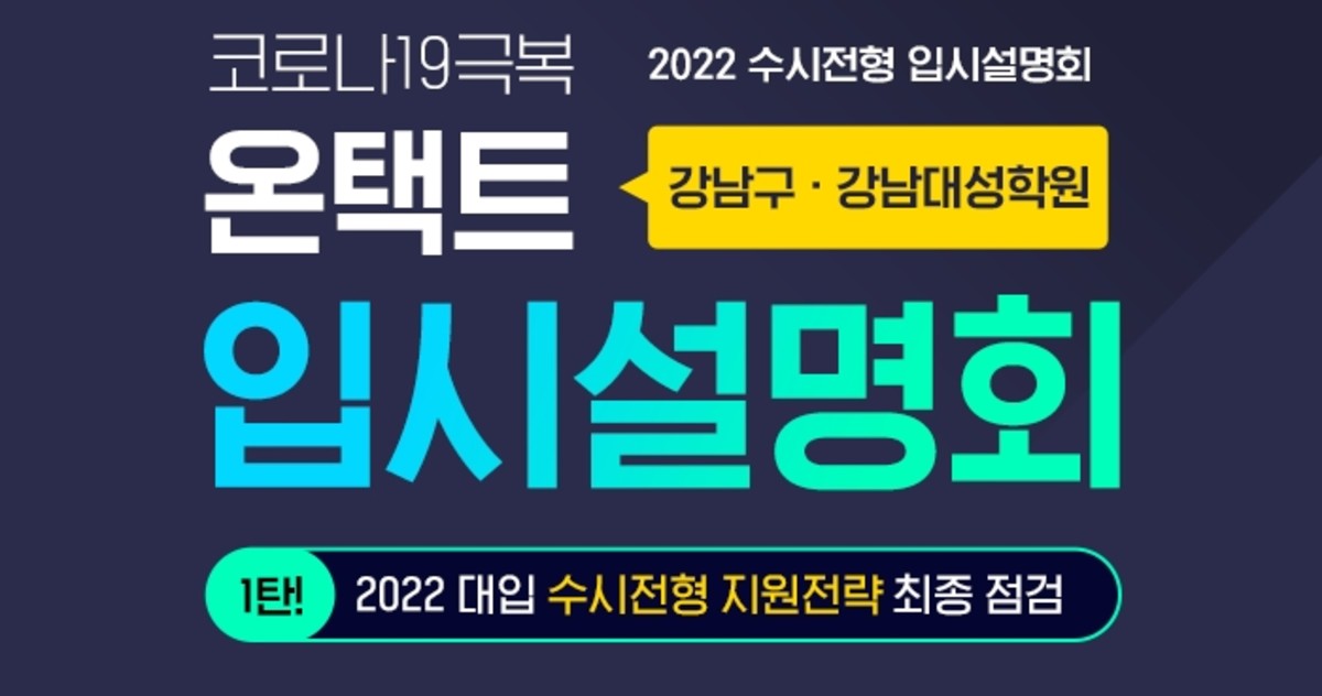 한편, 강남구와 강남대성학원이 함께하는 온택트 입시설명회는 총 3회로 예정되어 있으며, 이번이 그 첫 시간이다. 9월 모평 이후에는 파이널 학습 전략을 주제로, 수능 이후에는 정시 지원 전략을 주제로 입시설명회가 이어질 예정이다.