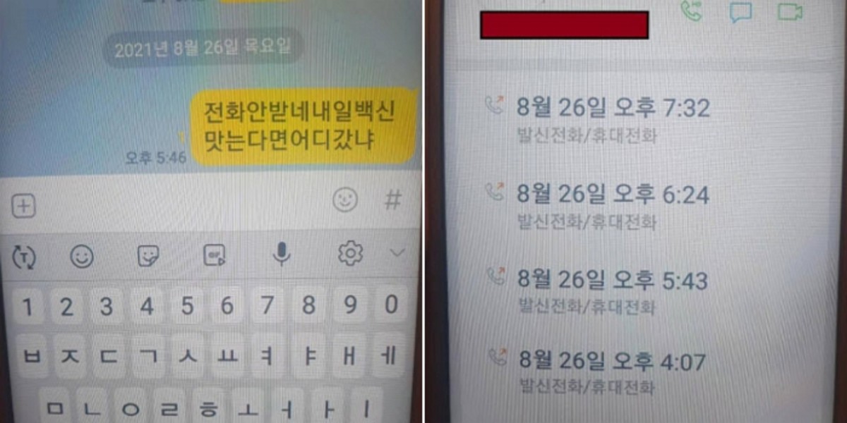 오후 5시 46분, 사고가 난 지 이미 몇 시간이 흐른 시각, A씨의 어머니는 A씨에게 "전화 안 받네. 내일 백신 맞는다며 어디갔냐"라는 내용의 메시지를 전송했다.
