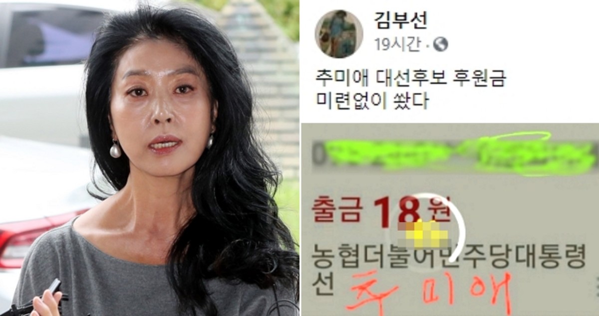 [인사이트] 함철민 기자 = 배우 김부선 씨가 추미에 전 법무부 장관에게 후원금 18원을 보냈다고 밝혔다.