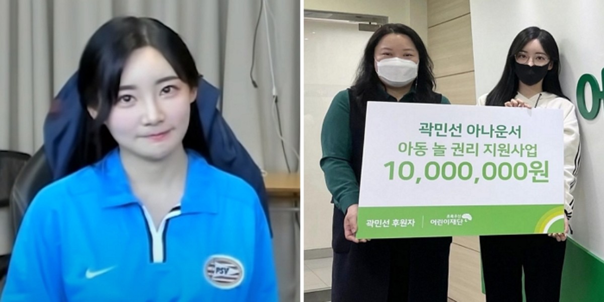 지난 3월 곽민선은 자신의 생일을 맞아 초록우산 어린이 재단에 1000만원을 기부했다.