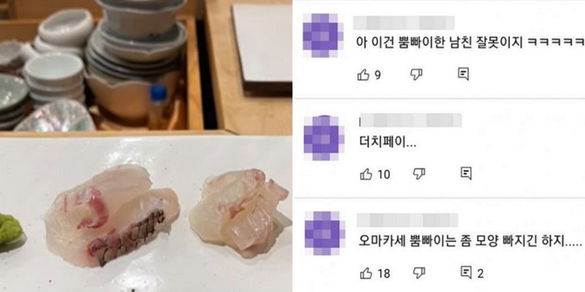 한 누리꾼은 "오마카세를 더치페이해 여친이 못생겼다는 소리까지 듣게하고 남친도 참 못났다"라며 "대놓고 깐 업장도 정신 나갔다. 여자만 불쌍하다. 비참하고 존심 상할듯. 손절해라"라고 하기도 했다.