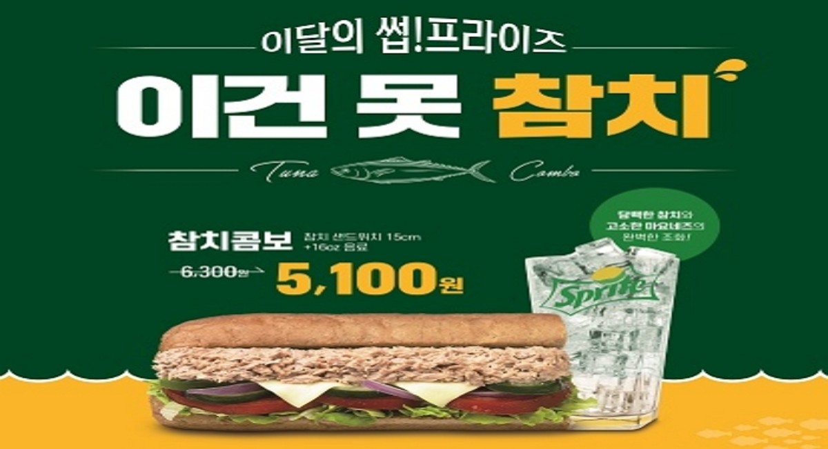 행사 기간 동안 참치를 주재료로 한 샌드위치 3종에 탄산 음료가 포함된 콤보 메뉴를 최대 19% 할인가에 즐길 수 있다.