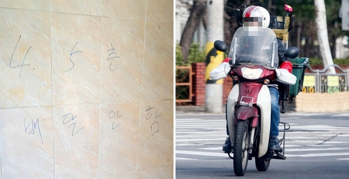 작성자는 사진 한 장을 공개했는데 사진에는 "4, 5층 배달 안 함"이라는 낙서가 적혀있었다.