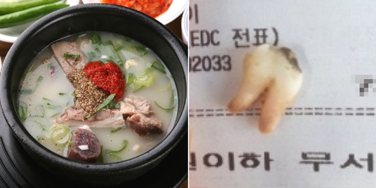 [인사이트] 전유진 기자 = 한 누리꾼이 돼지국밥을 먹다가 '이빨'이 나왔다며 인증샷을 공개했다.