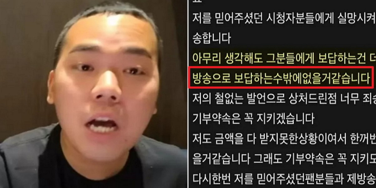 이어 "제가 무슨 말을 하겠습니까"라며 "저를 믿어주셨던 시청자분들에게 실망시켜드린 점 너무 죄송합니다"라고 사과했다.