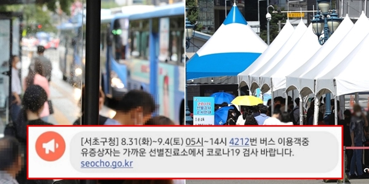 서초구청은 오늘(6일) 재난문자를 통해 "8.31(화)~9.4(토) 05시~14시 4212번 버스 이용객 중 유증상자는 가까운 선별진료소에서 코로나19 검사 바란다"고 당부했다.