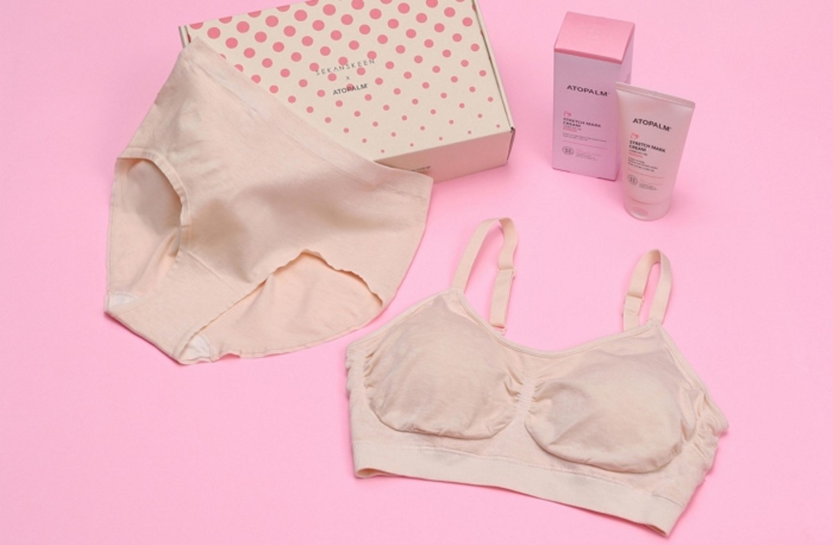세컨스킨X아토팜 패키지는 세컨스킨의 산전 브라 및 팬티 세트와 아토팜의 매터니티 케어 스크레치 마크 크림을 함께 만나볼 수 있으며, 한정판으로 출시된다.