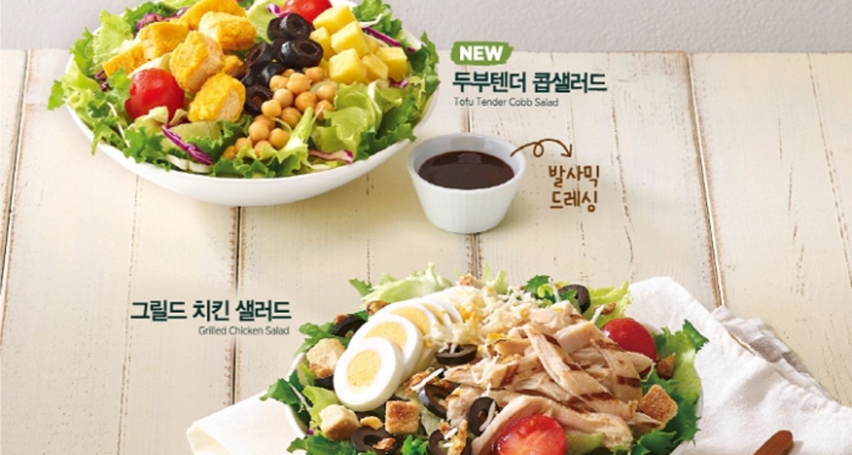 '두부텐더 콥샐러드'는 부드러운 두부텐더가 방울토마토, 고구마 큐브, 병아리콩 등과 조화롭게 어우러진 고소하고 담백한 맛의 샐러드다. 신선하고 아삭한 채소로 식감을 살리면서 식단 관리에 도움이 되는 두부로 만들어진 텐더, 방울토마토, 고구마 큐브 등의 재료를 더해 소비자들의 입맛과 건강을 함께 고려했다는 점이 특징이다.