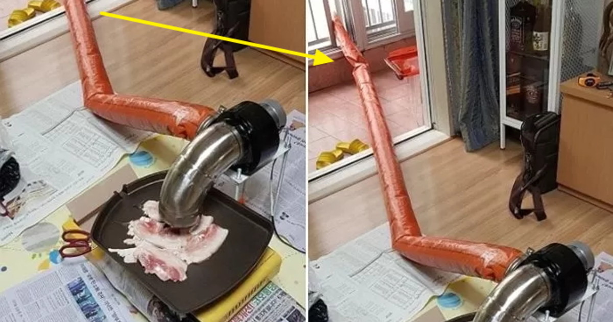 A씨는 삼겹살 구이가 너무 먹고 싶은 나머지 직접 철물점을 털어 재료를 구입한 뒤 고깃집 부럽지 않은 환풍기를 조립한 것이다.