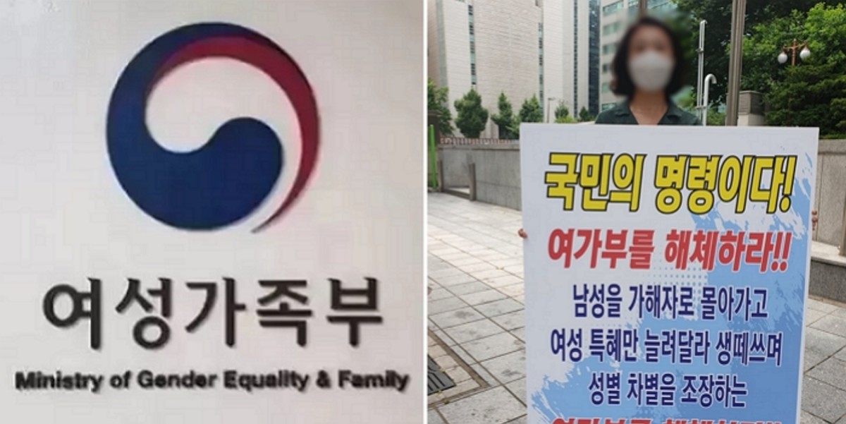 관련해 한 여성인권 시민단체가 여성가족부 해체를 촉구하는 시위를 벌이고 있어 주목받고 있다.