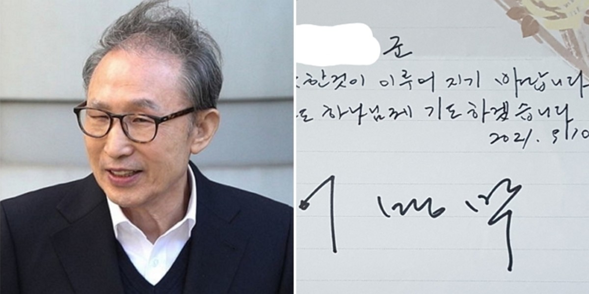 이 전 대통령은 편지에 "뜻한 것이 이루어지기 바랍니다. 나도 하나님께 기도하겠습니다"라고 적었다.
