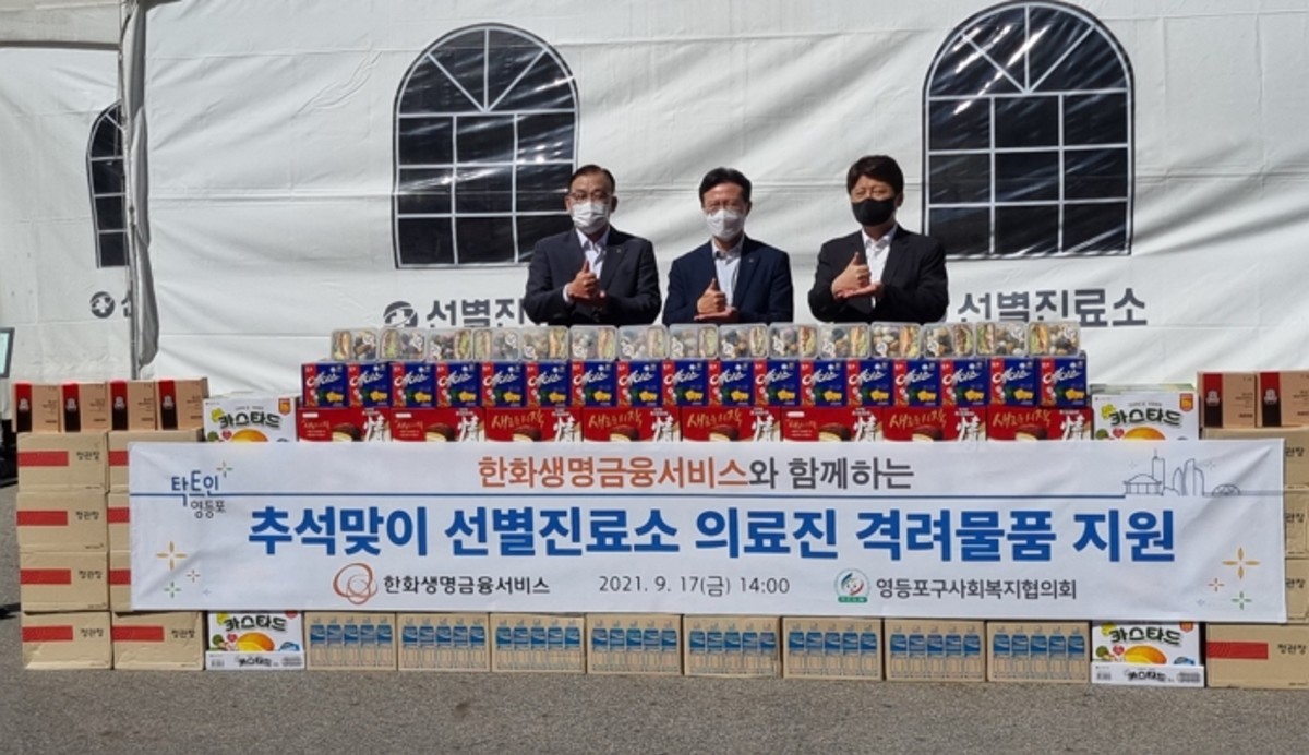 채현일 영등포구청장은 "코로나19가 장기화 되면서 의료진들이 많이 지치고 체력관리가 어렵다"라며 "한화생명금융서비스 임직원 분들이 많은 관심과 응원 보내주시는 것에 감사함을 느낀다"고 말했다.