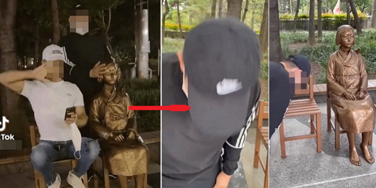 [인사이트] 전준강 기자 = 지난 19일 밤 한 외국인이 평화의 소녀상의 머리를 때리고 장난치는 영상을 틱톡에 올렸다.