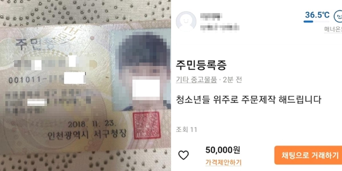 최근 다수의 온라인 커뮤니티에선 신분증을 주문 제작 한다는 판매글이 "당근마켓에 등장한 범죄자"라는 제목으로 퍼지고 있다.