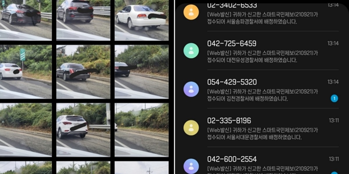그가 공개한 두 번째 사진 속에는 해당 차들을 경찰에 신고한 기록이 그대로 담겼다.