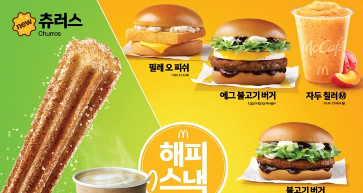 한편, 맥도날드의 '해피 스낵'은 버거, 사이드 메뉴부터 디저트까지 대표 인기 스낵들을 하루 종일 할인된 가격으로 제공하는 플랫폼이다. 이번 가을·겨울 시즌 '해피 스낵' 라인업은 '츄러스'를 비롯해 불고기 버거, 에그 불고기 버거, 필레 오 피쉬, 케이준 비프 스낵랩, 자두 칠러(M), 카페라떼 Hot(M)으로 구성돼 있다. 케이준 비프 스낵랩은 정상가격에서 약 31% 할인된 가격이며, 필레 오 피쉬는 약 28% 할인된 가격으로 인기 스낵을 가성비 넘치는 가격으로 만나볼 수 있다.
