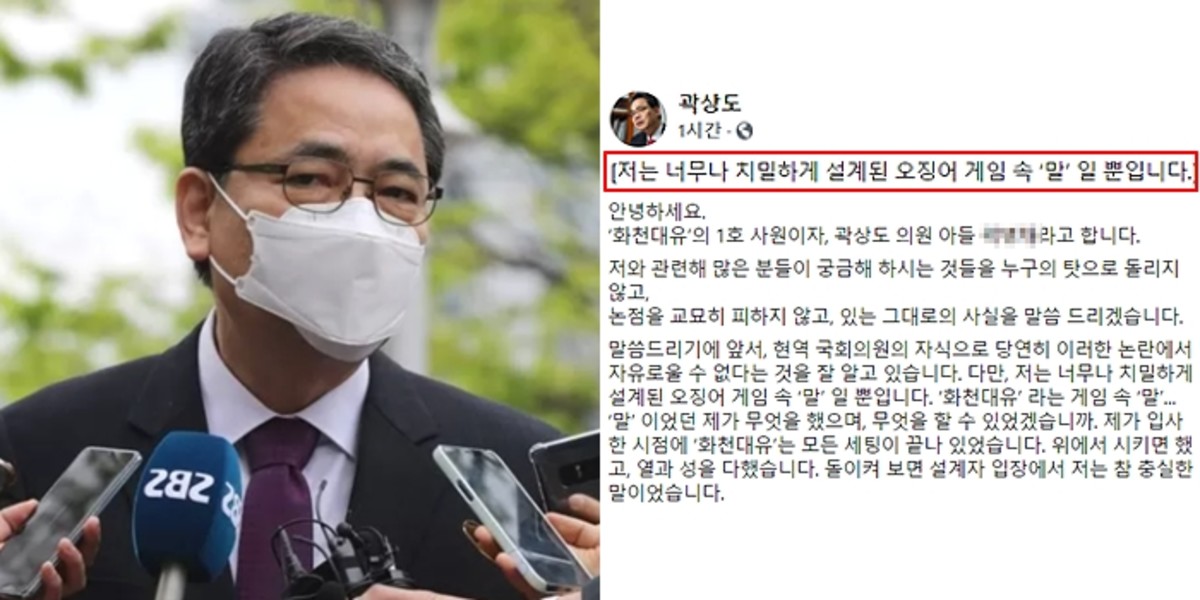 26일 곽상도 국민의힘 의원 아들인 곽 모 씨는 아버지 페이스북 계정에 올린 입장문을 통해 본인을 화천대유의 1호 사원이자 곽상도 의원 아들이라고 소개하며 이같이 말했다.