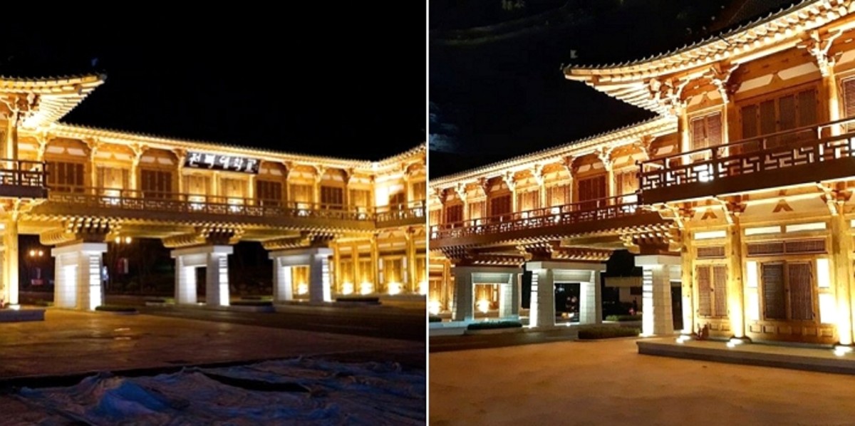 밤이 되고 조명이 켜지면 은은한 불빛이 한옥과 어우러져 고즈넉한 분위기를 자아낸다.