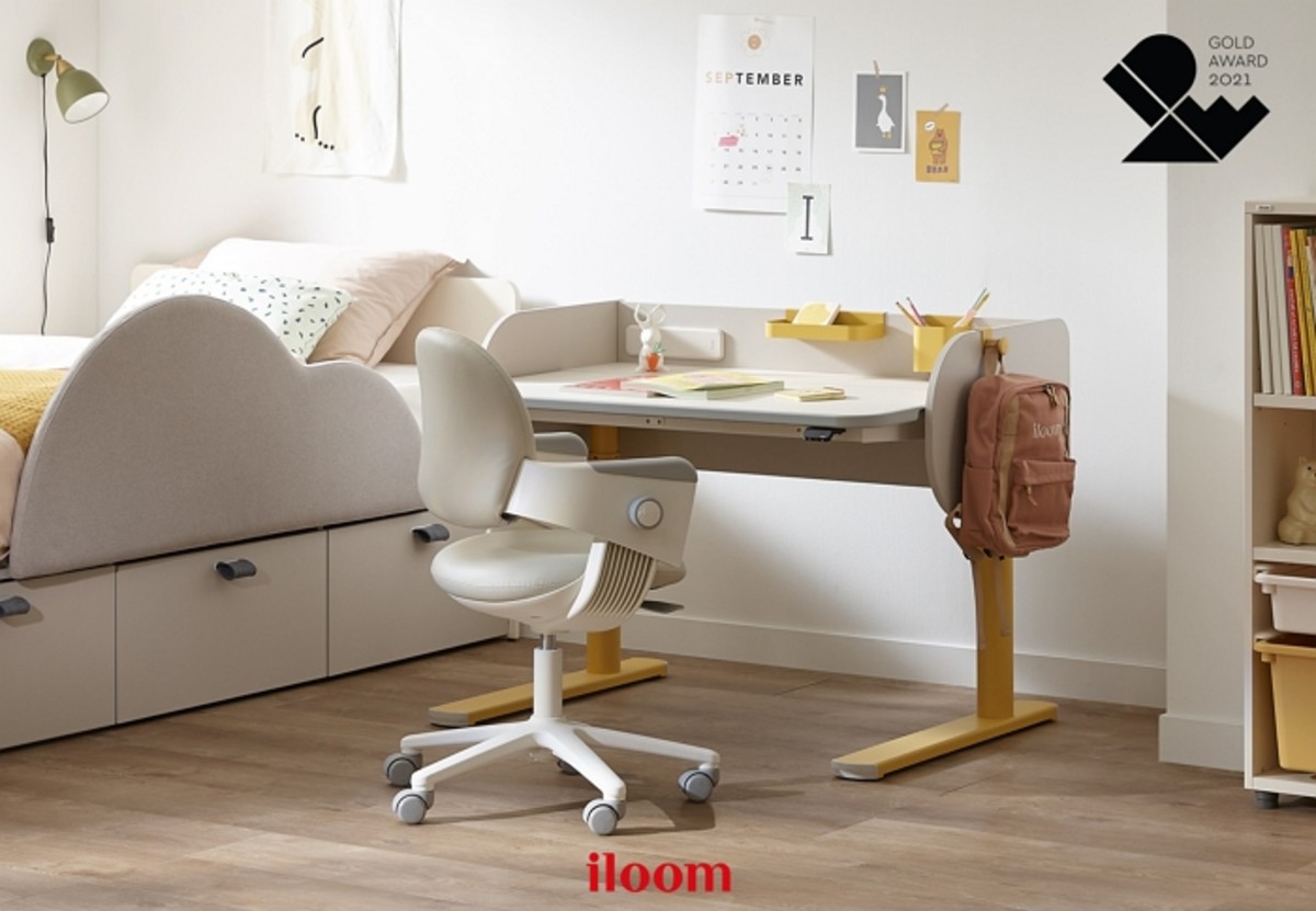 '2021 IDEA 디자인 어워드'에서 금상을 수상한 일룸 '제롬 모션데스크'는 성장기 아이의 체형에 맞춰 인체공학적으로 설계된 기능성 책상으로, 그레이와 옐로우 2가지 색상으로 구성되어 아이방에 활기를 더해준다.