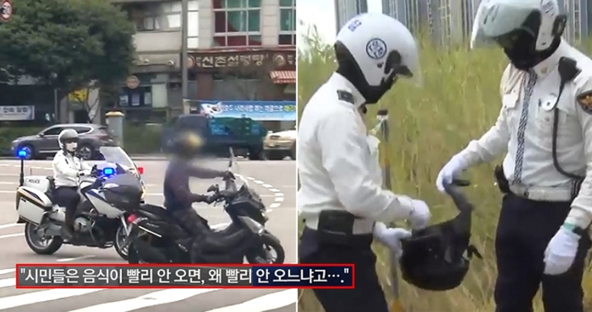 경찰이 이들을 단속하자 다급한 배달원들은 "이거 언제 되나요. 빨리?"라며 재촉했다.