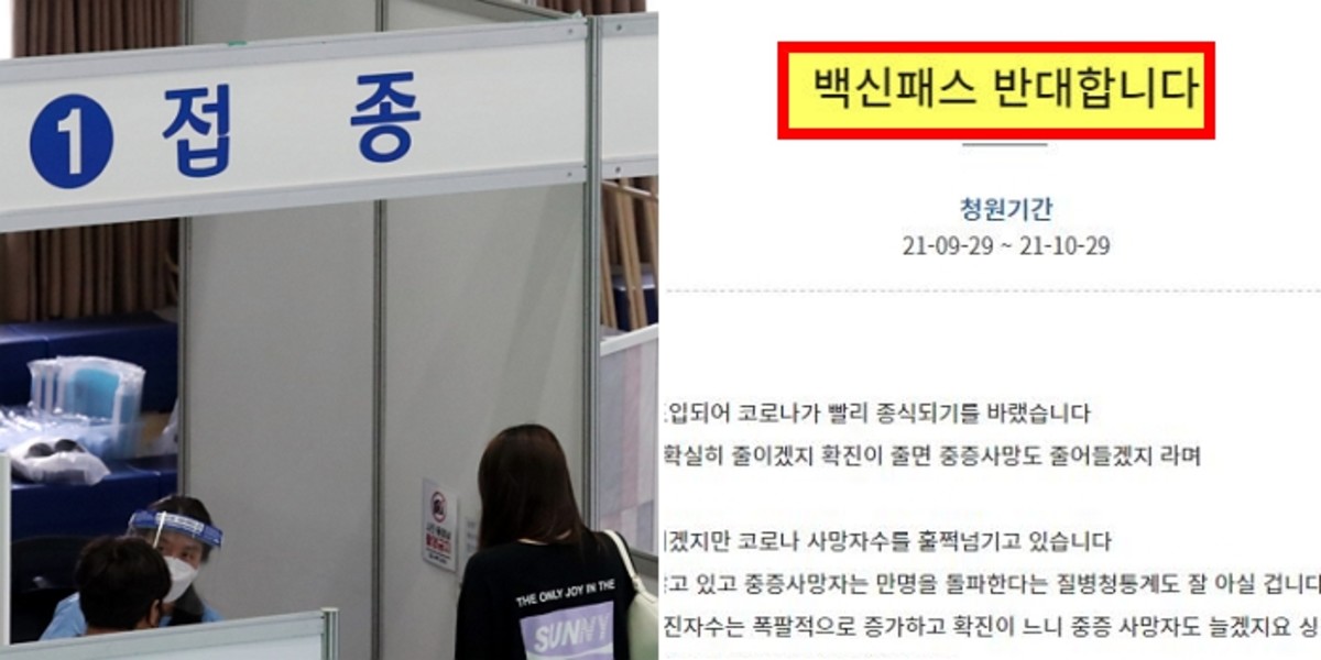[인사이트] 유진선 기자 = 정부가 단계적 일상 회복을 위해 '백신패스' 도입을 검토 중인 가운데 이를 반대하는 국민청원이 올라왔다.
