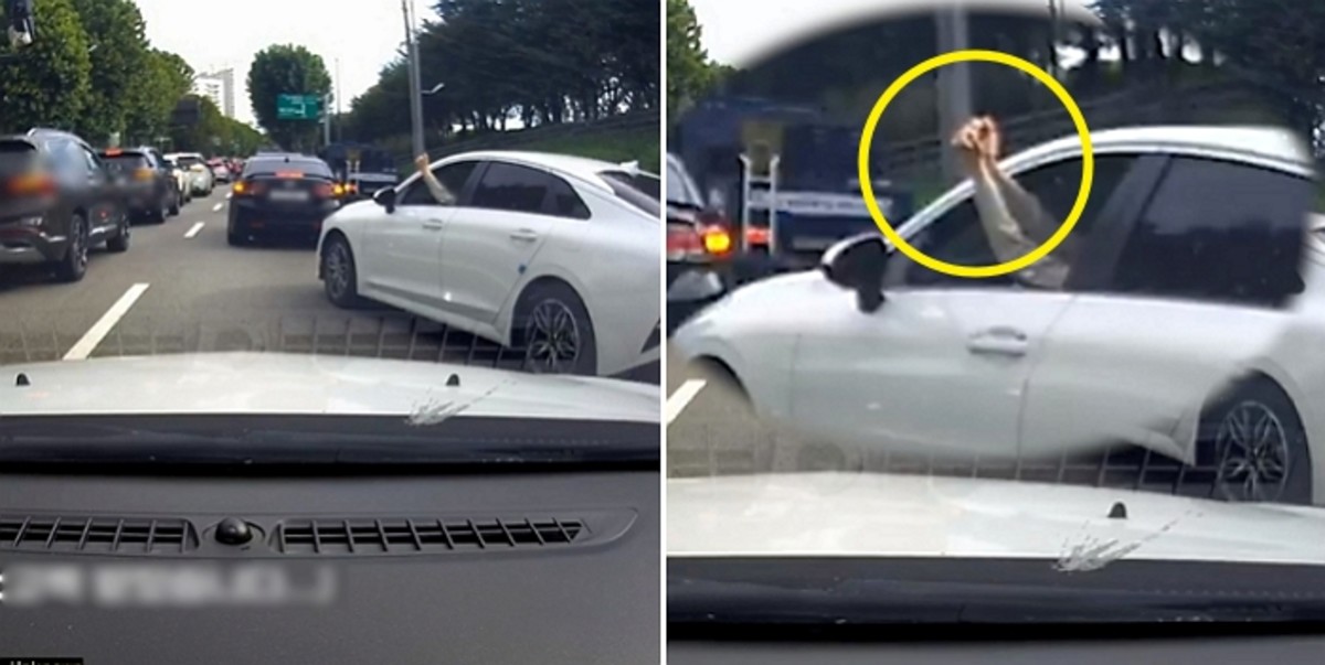 이때 옆 차로에 서 있던 차량에서 갑자기 창문이 열렸다. 차선을 변경해 끼어들기 위한 차량이었다.