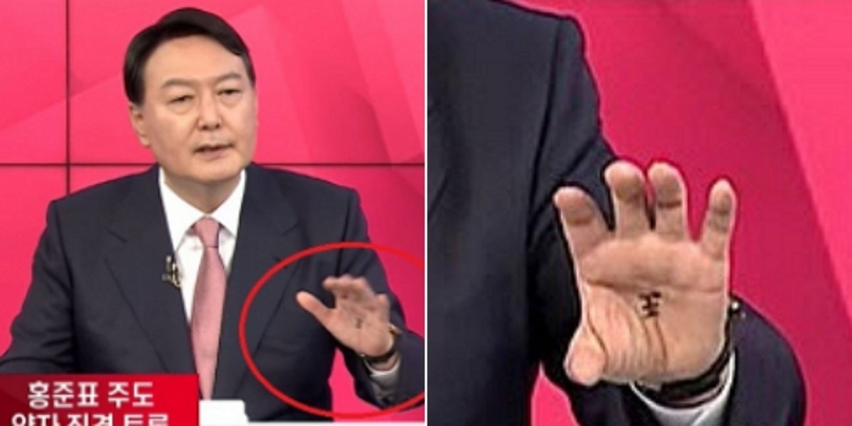 이날 토론회를 지켜본 시민들의 시선은 윤 전 총장의 손바닥으로 쏠렸다. 손을 이용한 제스처를 취할 때마다 손바닥에 작게 그려져 있던 한자 왕(王)자가 노출됐기 때문이다.