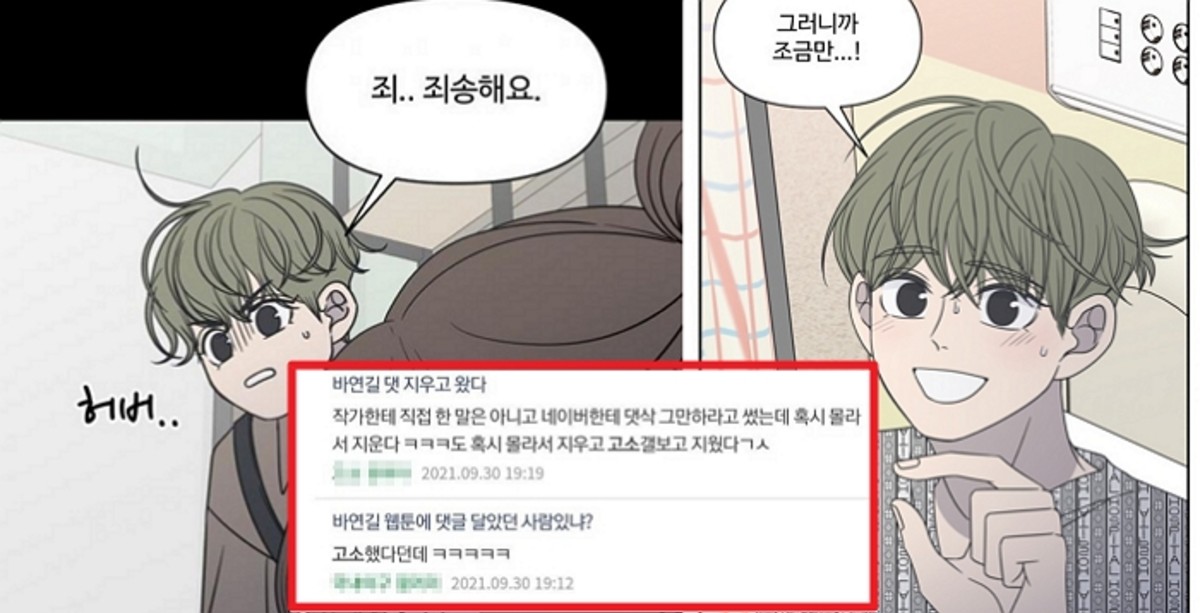 한 누리꾼은 "올해 초 댓글 테러 당했던 웹툰 바연길 고소 진행 중이다"라는 글을 올렸다.