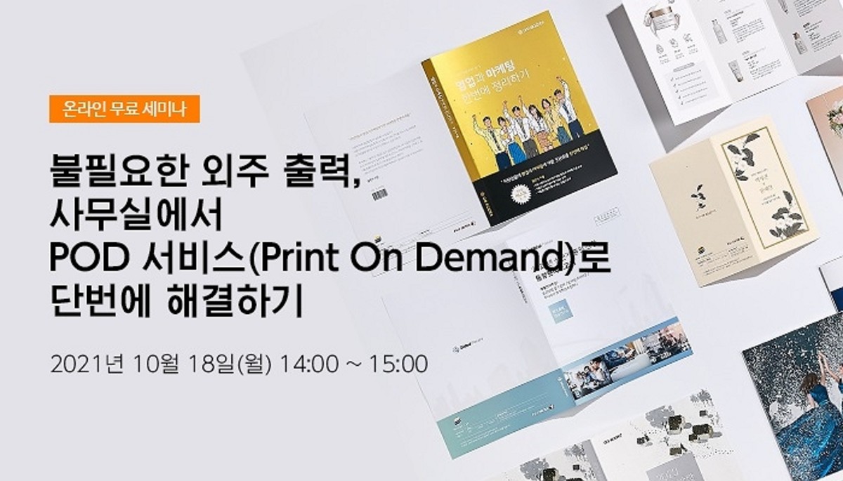 이번 웨비나는 많은 기업들이 고민하는 외주출력으로 인한 비용 지출, 기업 정보 누출 리스크, 생산성 저하에 대한 해결 방안인 '사내 POD 서비스(이하 인하우스 프린팅)'를 소개하기 위해 기획됐다.