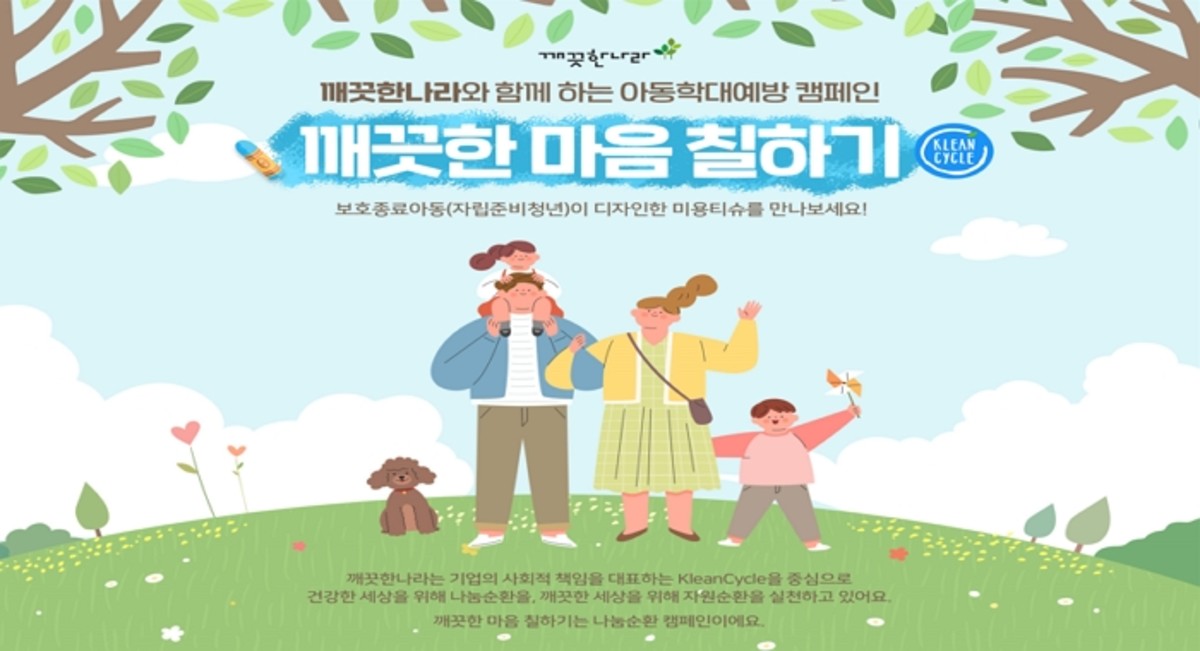 깨끗한나라는 공식 CSR 채널인 '클린사이클'을 통해 아동학대 예방에 대해 알려오고 있으며, 더 많은 국민들에게 아동학대 예방에 대한 공감할 수 있는 장을 마련해주고자 네이버 해피빈과 제휴를 결정했다.