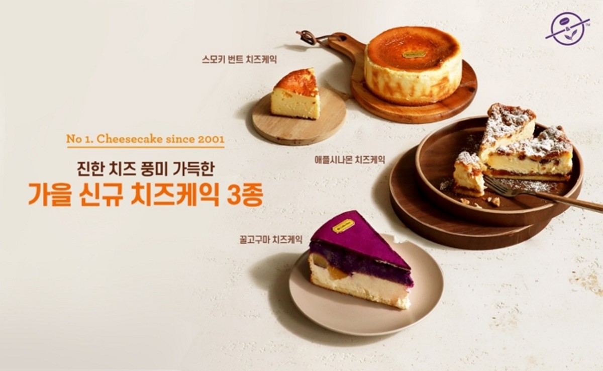 커피빈의 가을 신규 치즈케익 3종은 고온에서 구워낸 그을린 크림치즈의 스모키한 풍미가 일품인 스모키 번트 치즈케익, 묵직한 번트 치즈 케익 위에 달콤한 자색 고구마 무스가 올라간 꿀고구마 치즈케익, 고소한 식감의 크럼블과 상큼한 사과, 진한 치즈의 조화를 동시에 맛볼 수 있는 애플시나몬 치즈케익으로 구성됐다.