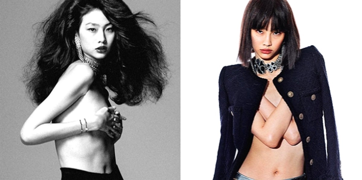 그뿐만 아니라 상의는 탈의하고 타이즈를 입고 찍은 사진에서는 갸냘픈 몸매와 여성스러운 이미지를 뽐냈다.