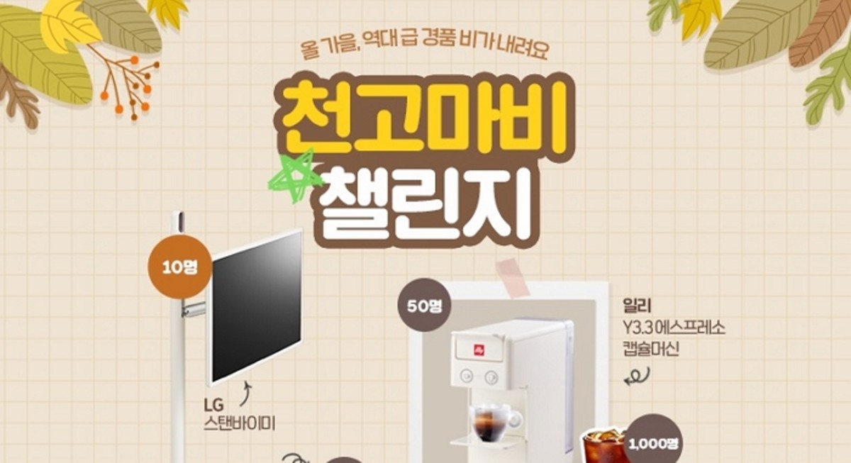 [인사이트] 유진선 기자 = 알바천국이 오는 11월 19일까지 LG 스탠바이미, 일리 캡슐커피머신 등 역대급 경품을 제공하는 '천고마비 챌린지'를 실시한다고 밝혔다.
