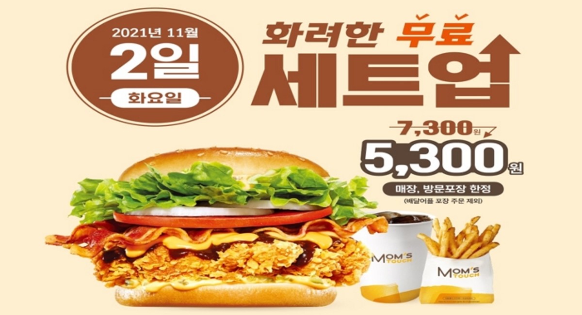 [인사이트] 조세진 기자 = 맘스터치가 11월 매주 화요일마다 '화려한 무료 세트업'을 실시한다고 29일 밝혔다.
