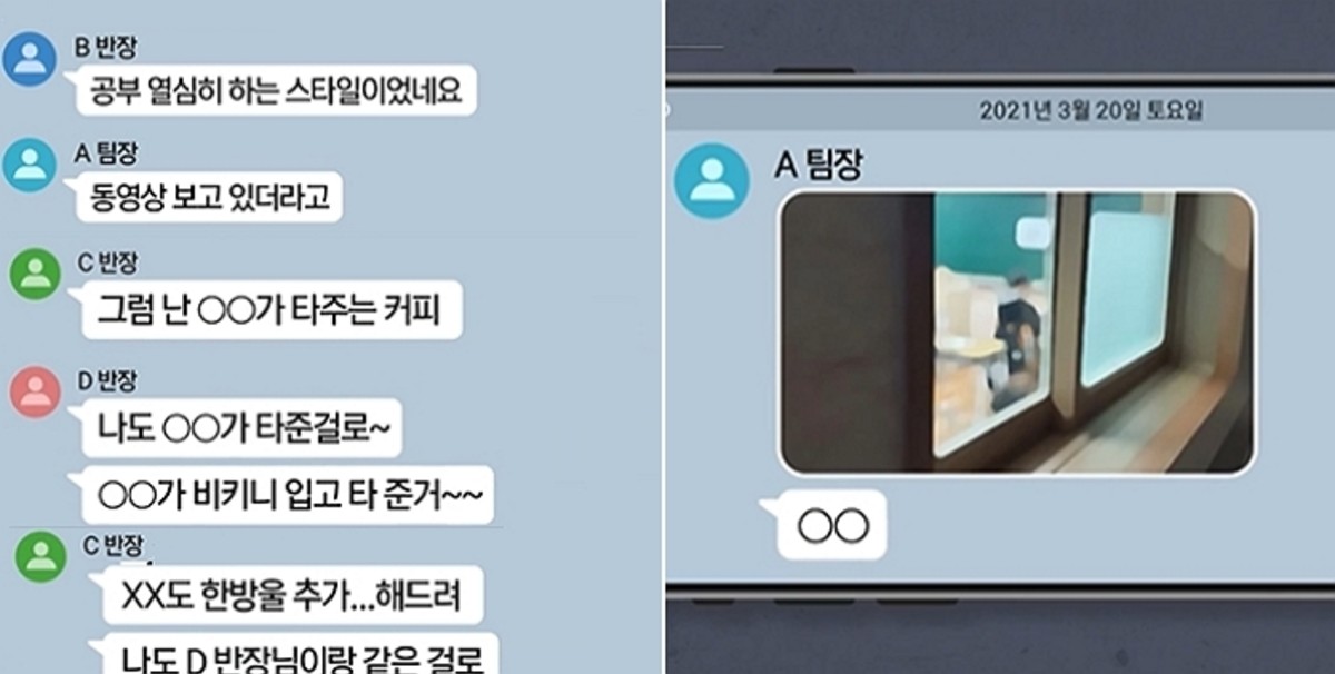 해당 사진은 자격증 시험을 보러 간 팀장이 앞자리 여성을 몰래 촬영해 공유한 것으로, 해당 여성의 이름도 언급됐다.