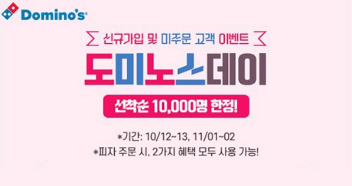 도미노피자 관계자는 "자체 홈페이지 회원 혜택 강화를 위해 신규 회원가입 고객과 미주문 고객을 대상으로 이번 행사를 진행한다"며 "고객분들이 도미노피자 홈페이지와 앱을 통해 다양한 서비스와 혜택을 받으시길 바란다"고 말했다.