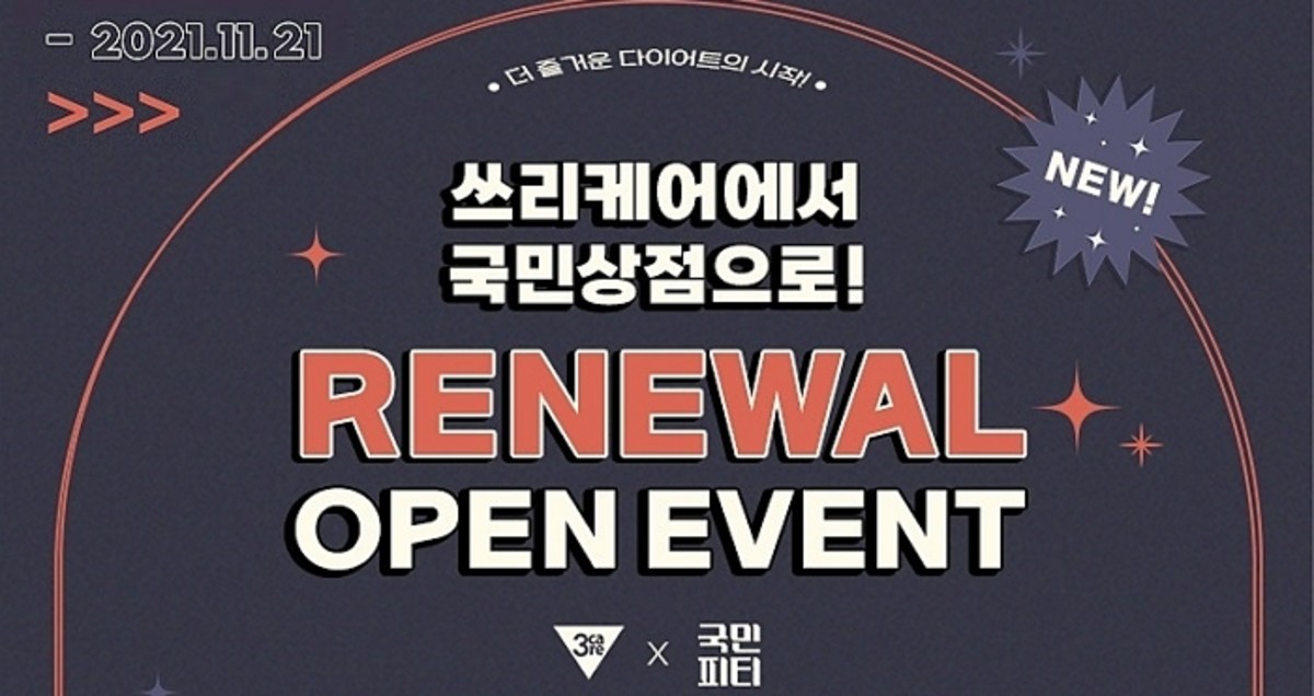 다이어트 식품 제조·판매 기업 쓰리케어코리아는 운영 중인 다이어트 식품 브랜드 '쓰리케어'를 '국민상점'으로 변경하고, 모회사에서 전개하는 액티브웨어 브랜드 '젝시믹스'의 운동 및 건강관련 제품 판매까지 카테고리를 넓혀 건강 콘셉트의 종합몰로 리뉴얼을 진행했다.