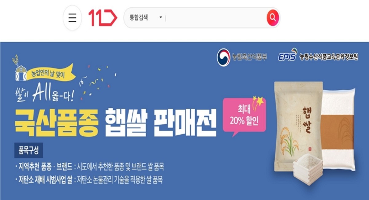 '농업인의 날'(11월11일)을 맞아 농림축산식품부와 함께 국산품종 햅쌀 판매행사인 '쌀이 옳-다!' 기획전을 8일부터 오는 23일까지 실시한다.