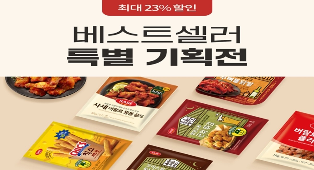 이번 기획전에서는 앞서 소개한 사세의 베스트셀러 제품인 버팔로 윙, 버팔로 윙봉 그리고 크리스피 치킨봉, 화리케인 치킨봉을 세트로 묶어 배송비 포함 정가 33,660원에서 23% 할인한 25,900원에 판매한다.