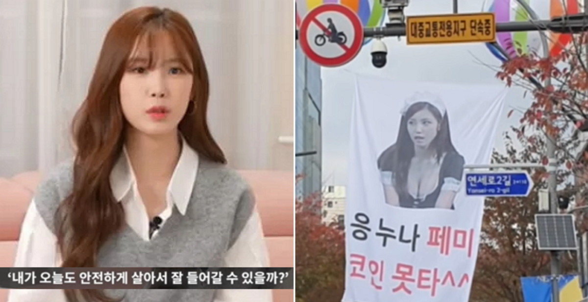 현수막에는 "응. 누나. 페미코인 못 타"라는 문구가 적혀 있었다.