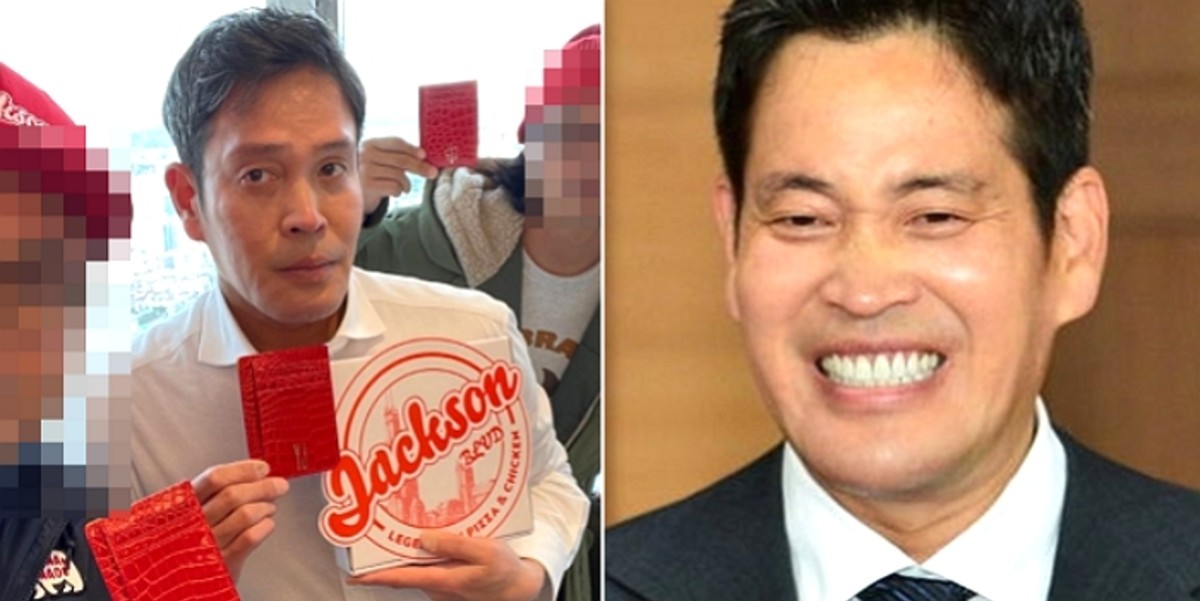 정 부회장의 다른 한 손에는 빨간색 로고가 새겨진 '잭슨피자' 상자가 들려있다.