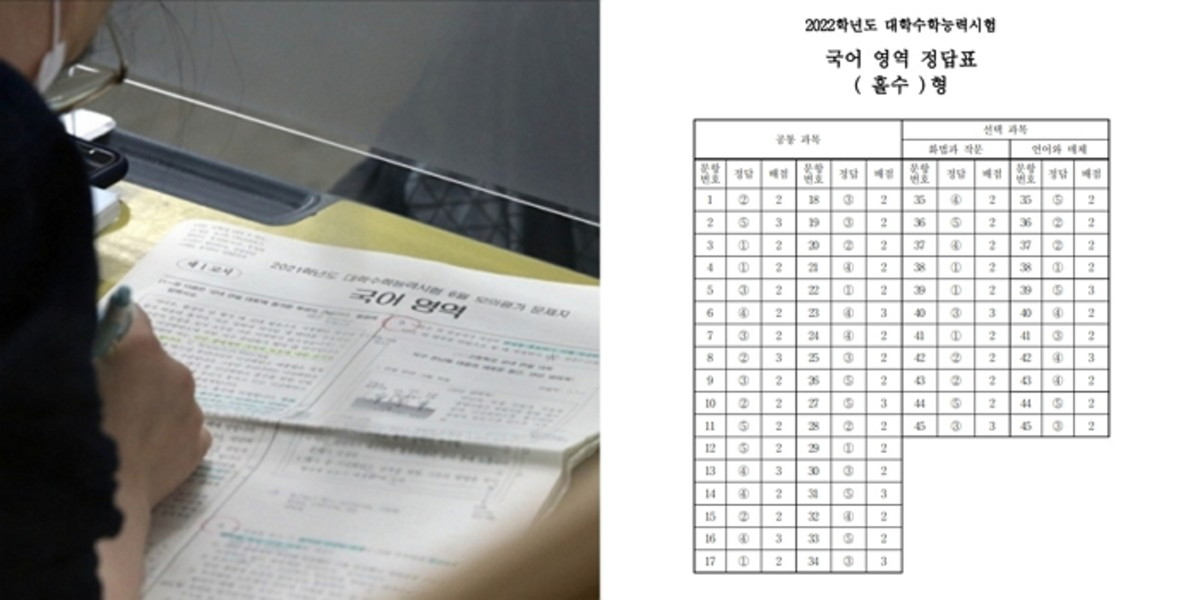 [인사이트] 전준강 기자 = 2022학년도 대학수학능력시험 '국어 영역' 정답표가 공개됐다.