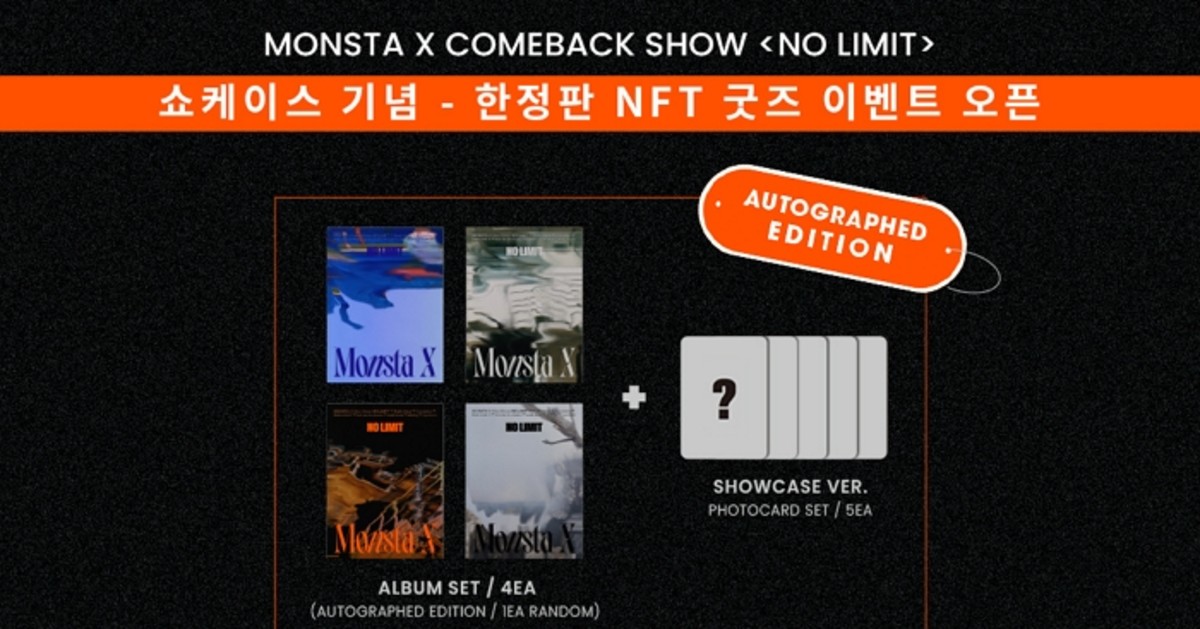 엔씨는 몬스타엑스의 컴백 쇼케이스를 기념해 한정판 NFT 굿즈를 선보인다. 추첨을 통해 당첨된 50명의 팬들은 NFT 굿즈와 실물 굿즈(앨범 4종 세트, 포토카드 등)를 받을 수 있다.