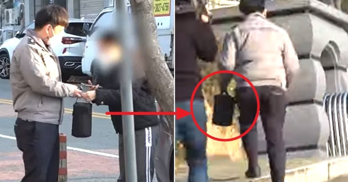 한 학부모와 이야기를 나누더니 한 손에 검은 가방을 들고 학교를 향해 뛰어 들어가는 경찰관. 그것은 다름 아닌 도시락 가방이었다.