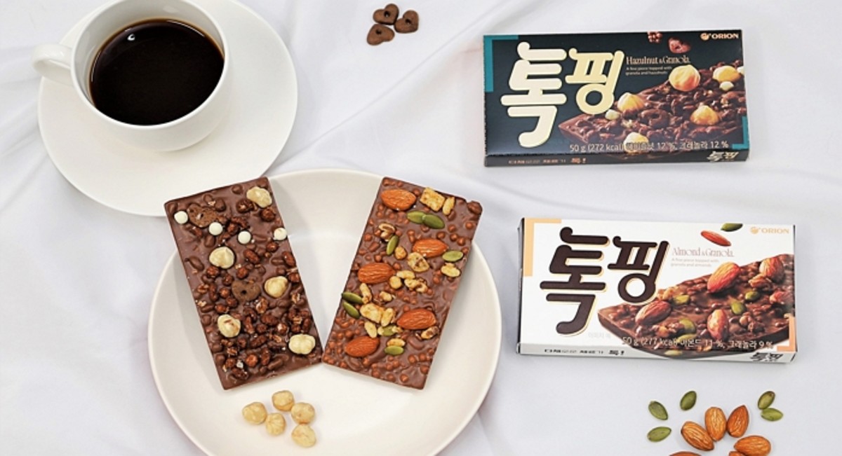 뒷면에는 바크 초콜릿 특유의 나뭇결 패턴을 새겨 고급스러움을 살렸다. 톡핑은 '아몬드&그래놀라'와 '헤이즐넛&그래놀라' 제품 2종으로 출시됐다.