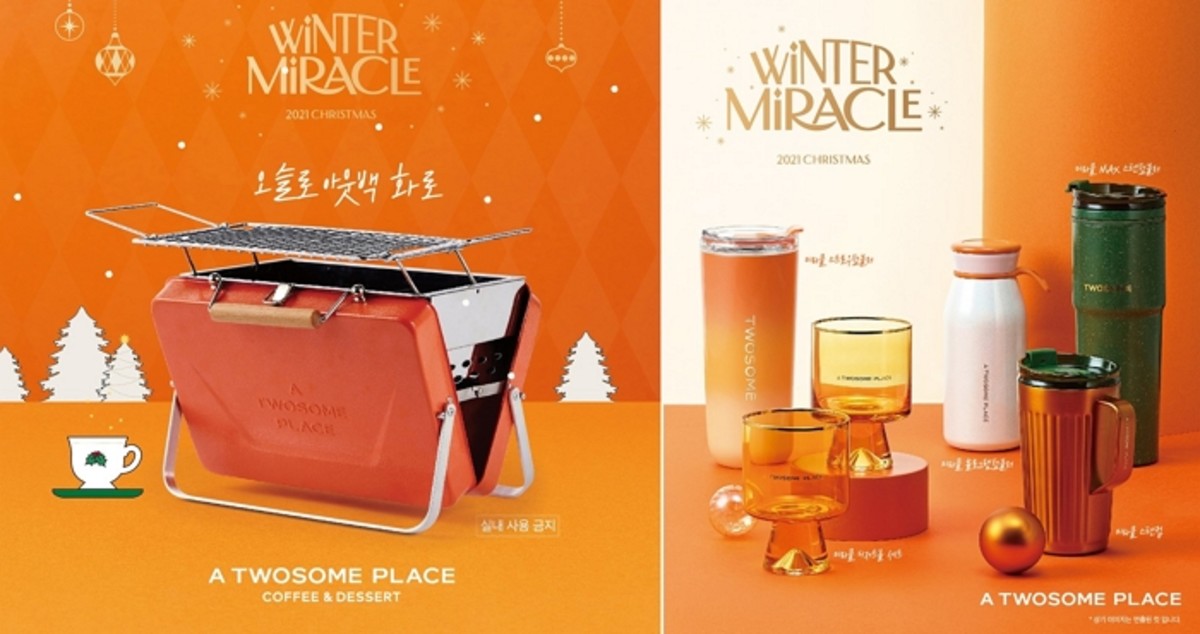 이번 기획상품은 투썸플레이스의 올겨울 시즌 테마인 '윈터 미라클'을 모티브로 세련되면서도 따뜻한 '오렌지' 컬러를 활용해, 겨울철 아웃도어 활동에 유용한 화로와 크리스마스 홈파티에 잘 어울리는 디저트볼, 스텐컵, 텀블러 등으로 구성했다.