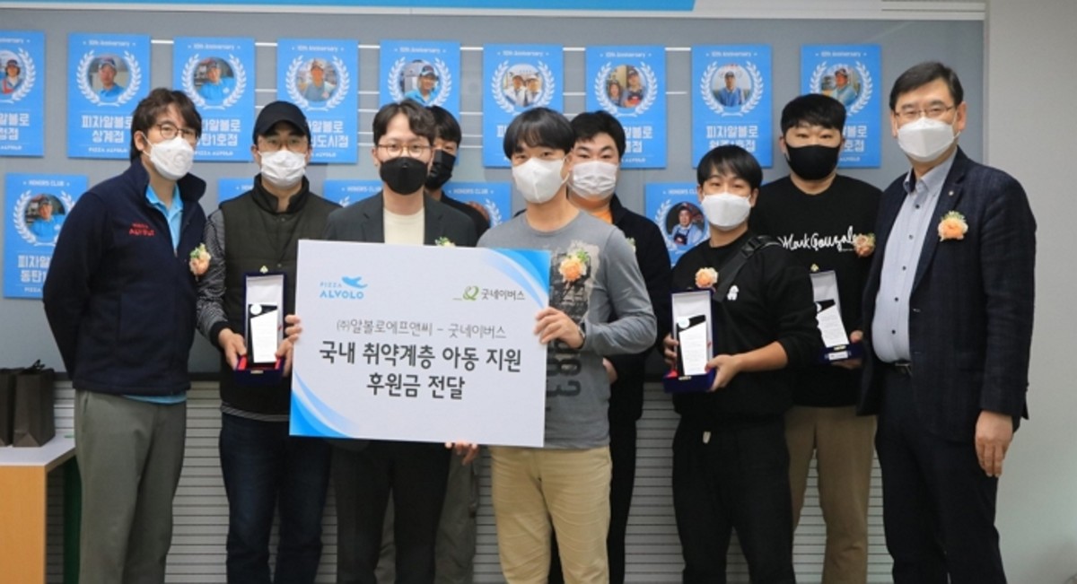 피자알볼로 아너스클럽 매장 이름으로 모인 기부금은 위기가정 아동의 교육비 및 생활비로 사용되며, 수혜 아동의 긍정적인 미래와 자아 형성을 도울 수 있도록 '굿네이버스'에 전달됐다.